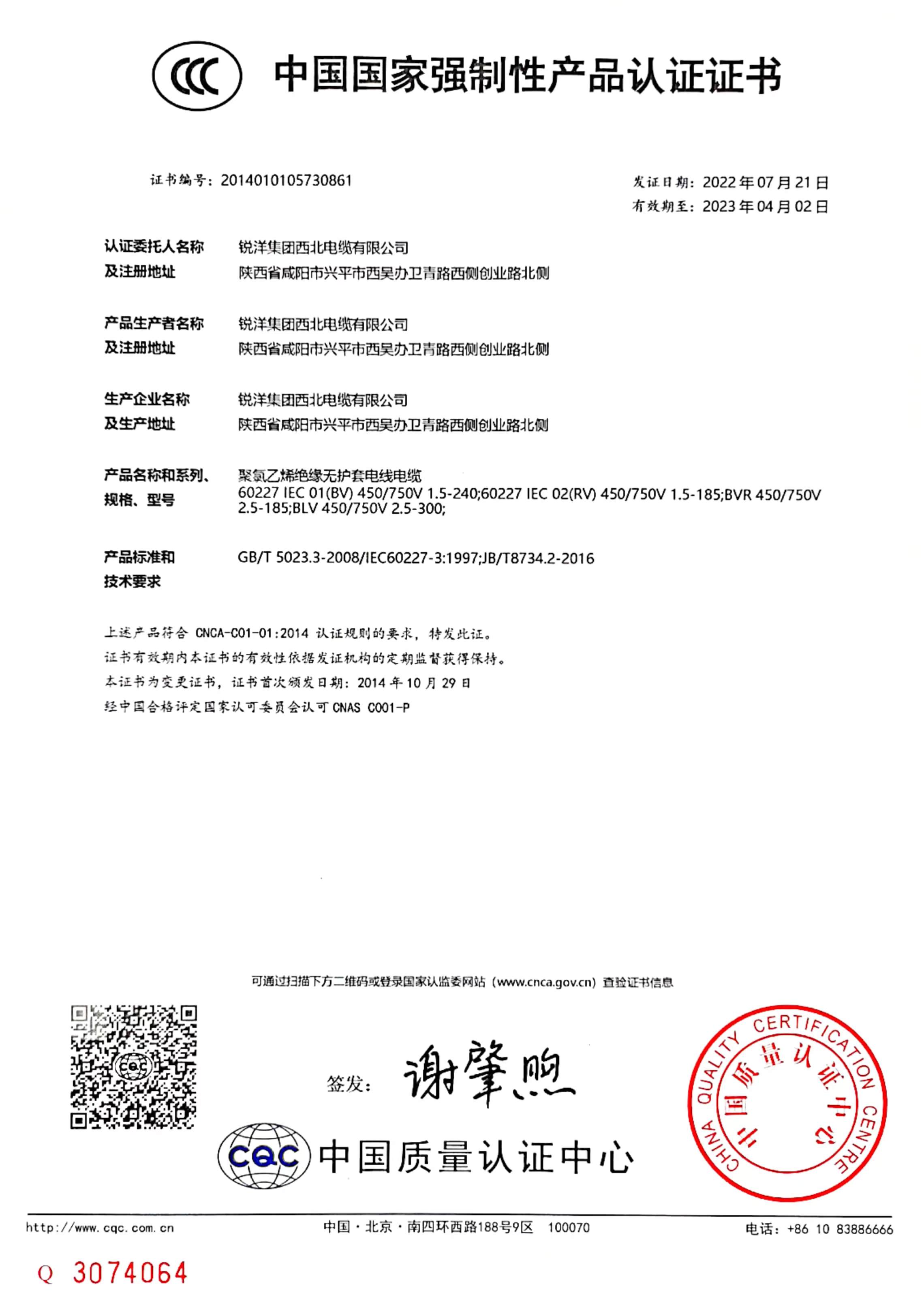中國國家強制型產(chǎn)品認(rèn)證證書